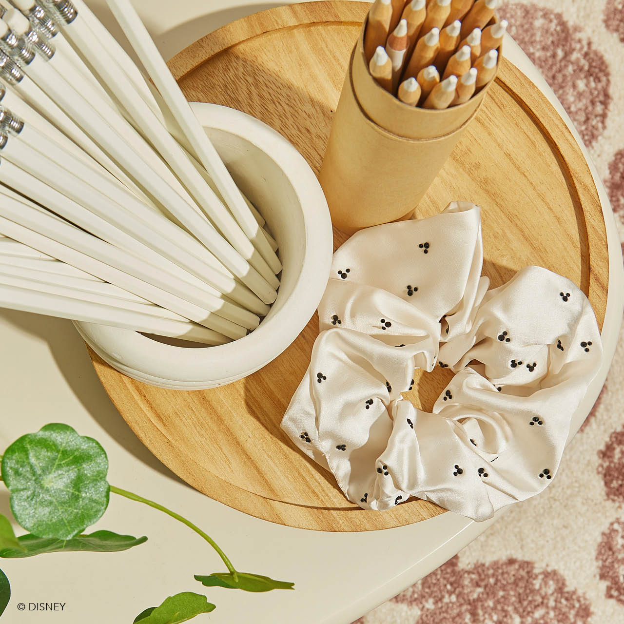 Kitsch x Mickey and Minnie Cream Rhinestone Scrunchie